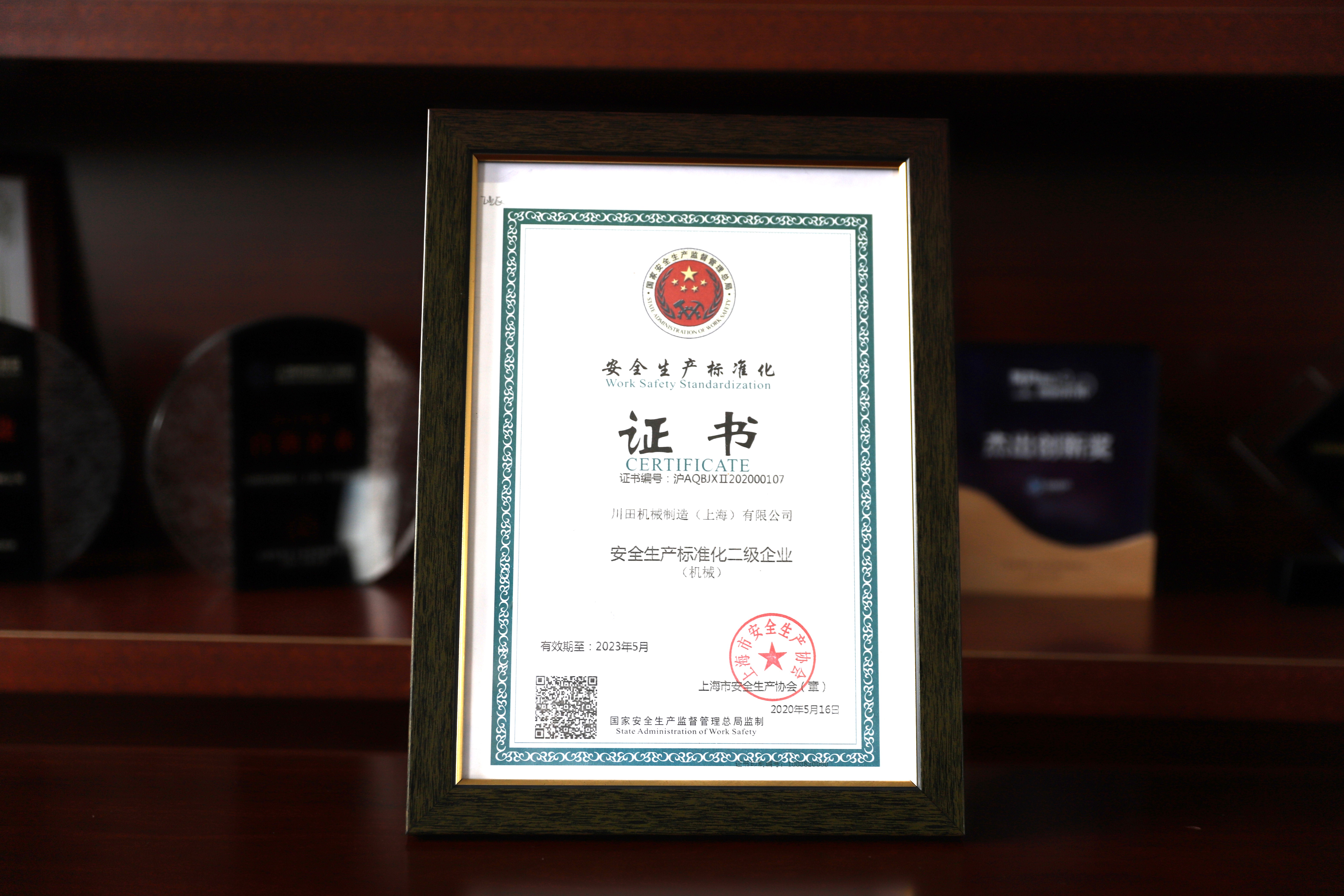 2020 上海安全生產協會 安全生產標準化證書