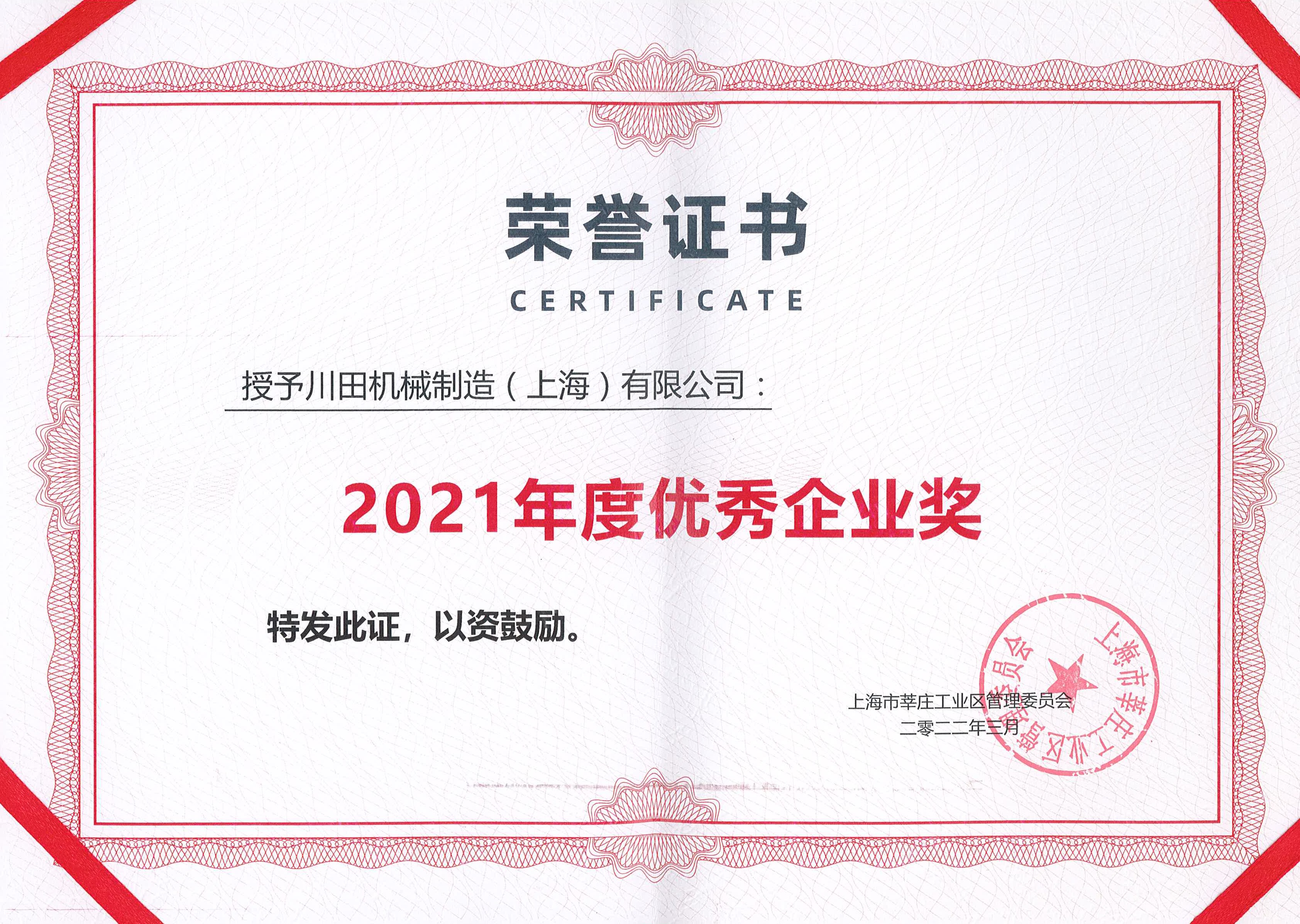 2021 莘莊工業區 優秀企業獎證書