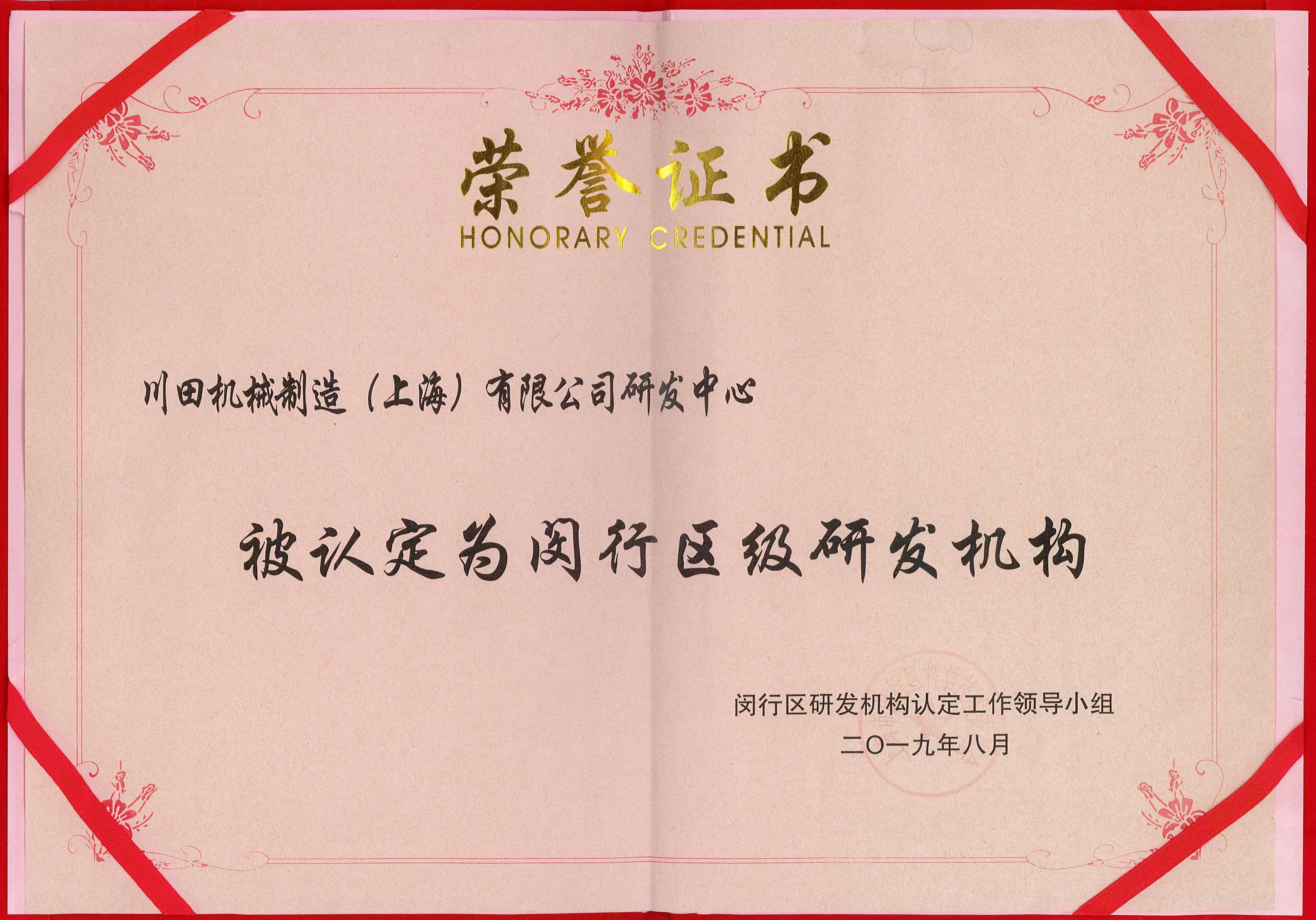2019 閔行區 研發機構證書